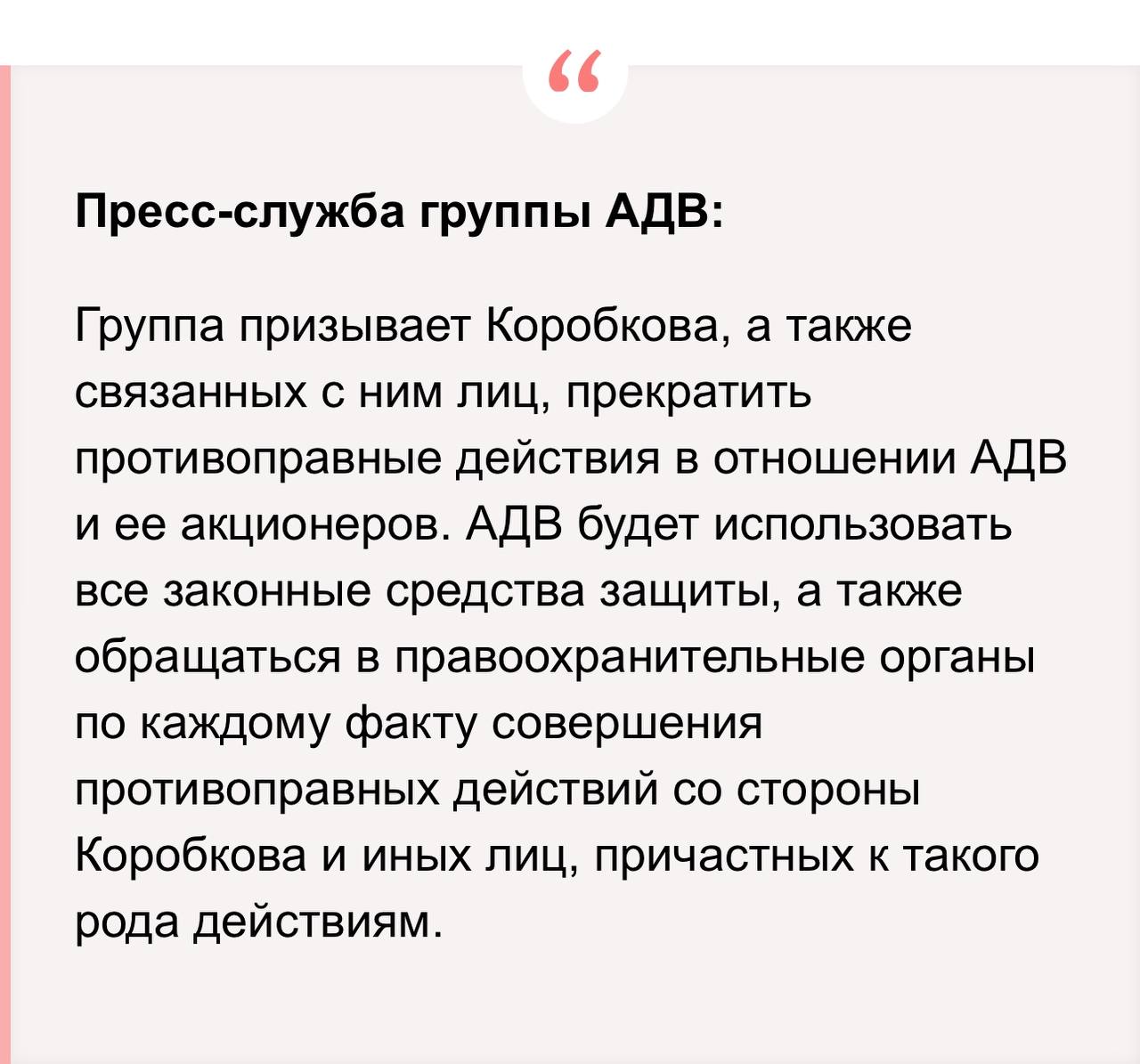 🤓В АДВ вышел нормальный пиарщик. Они наконец сделали то, что должны были сделать месяц-полтора назад. Внятно и последовательно изложили свою позицию в судебном споре с бывшим акционером Дмитрием Коробковым на страницах одного из индустриальных изданий. Пасхалочку в финале тоже не забыли👆🏻.