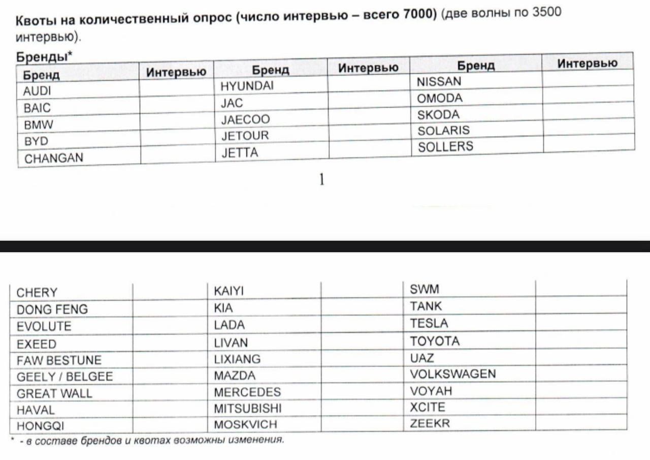 Вот список на исследование (https://www.b2b-center.ru/market/issledovanie-potrebitelei-novykh-avtomobilei-na-rossiiskom-rynke/tender-3941121/) предпочтений потребителей, владеющих сегодня представленными выше марками. В списке имеется большинство ранее популярных европейских марок и самые распиаренные китайцы.