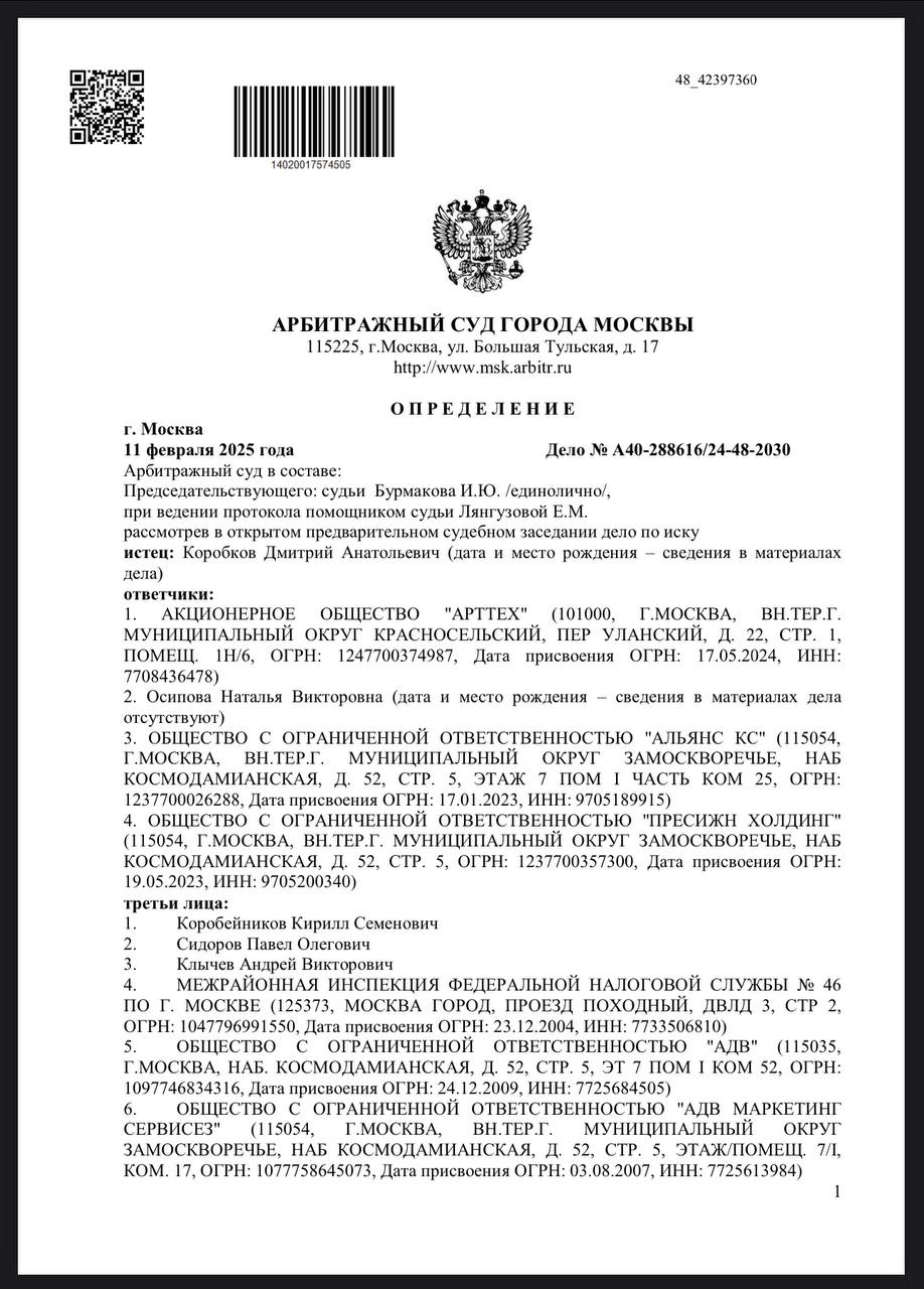 🤓Решение по второму иску Коробкова к действующим юрлицам АДВ.