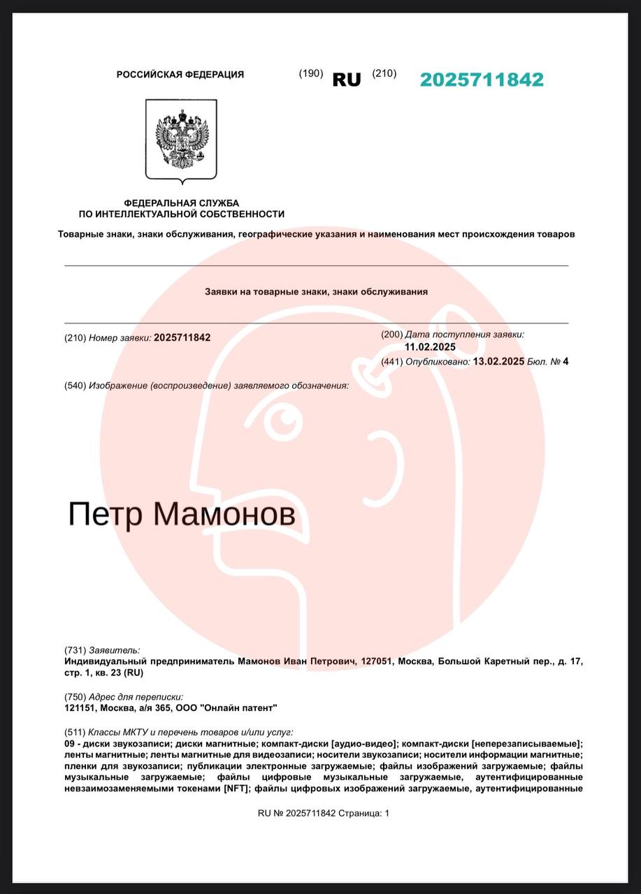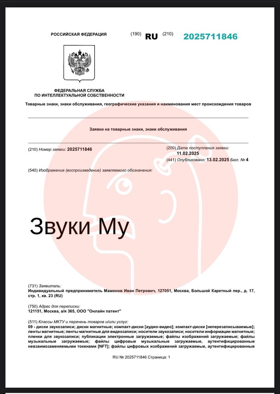 🤓ИП Иван Петрович Мамонов регистрирует фамилию и имя отца, как товарный знак. А также — название легендарной группы «Звуки Му».