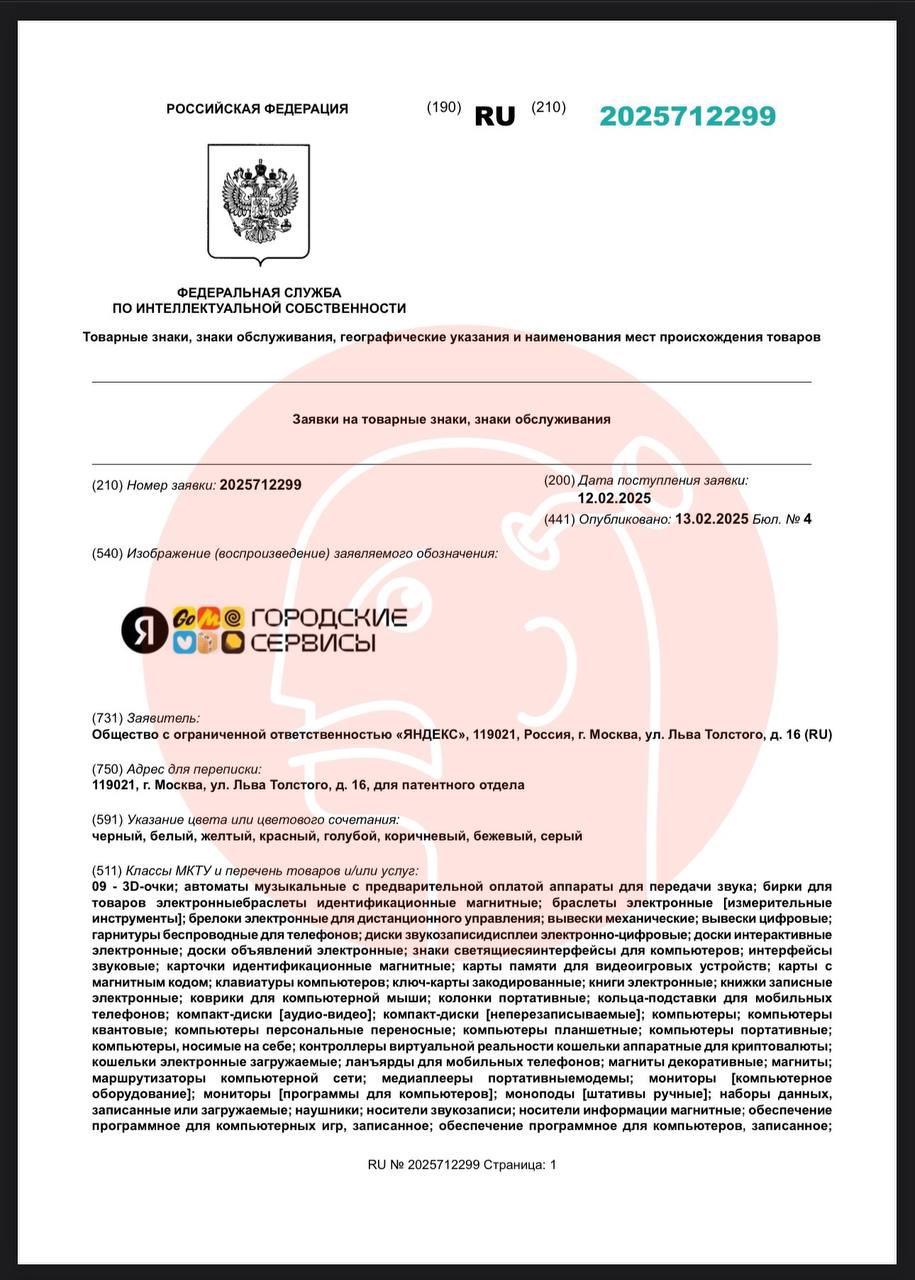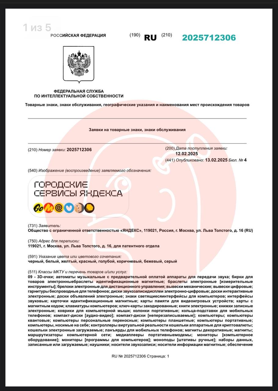 🤓Яндекс зачем-то подал на регистрацию формулировку «городские сервисы», которую использовал ранее для обозначения разрозненного набора продуктов, объединенных внутри супераппа «Яндекс Гоу» (это случилось с ними в 2020 году).