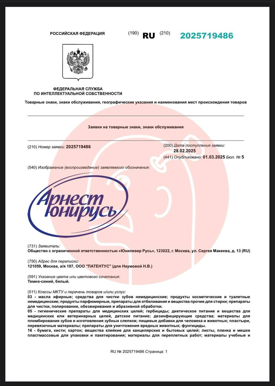На регистрацию подан совместный бренд «Арнест Юнирусь» без этих ваших затейливых узоров…
