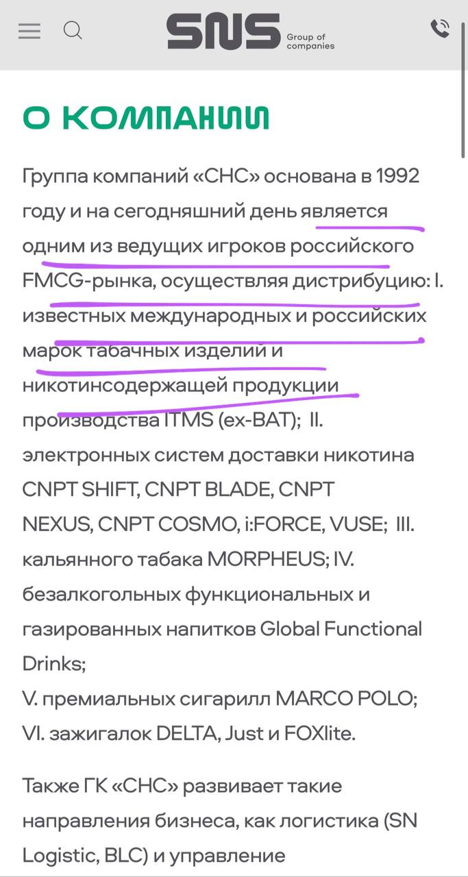 Исходя из информации на сайте ликвидированного юрлица компания являлась одним из ведущих игроков российского рынка дистрибуции табачных изделий и вейпов. Ого!