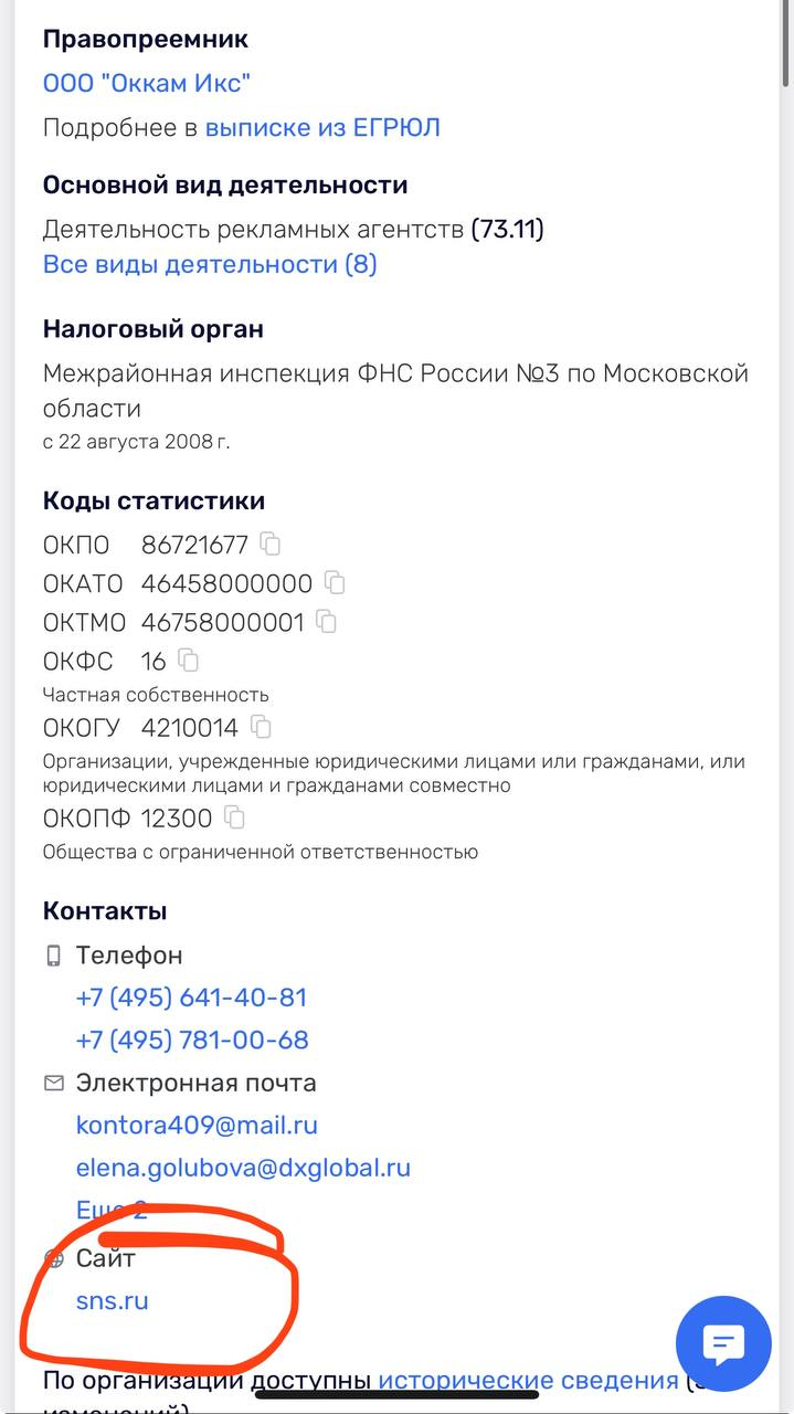 Ладно. Домен ушел новым обладателям. Ликвидировано диджитал-агентство SNS в структуре ОККАМ.