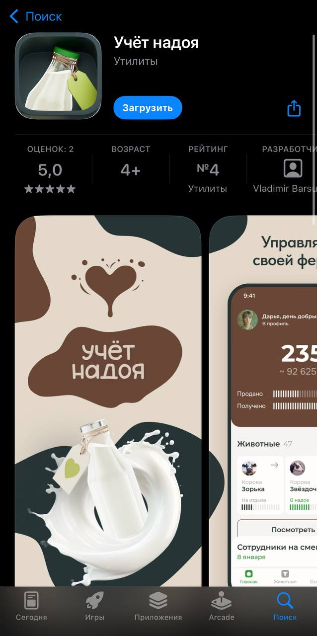 Россельхозбанк замаскировал свое приложение для клиентов в Аппсторе — под инструмент учета надоев рогатого скота.
