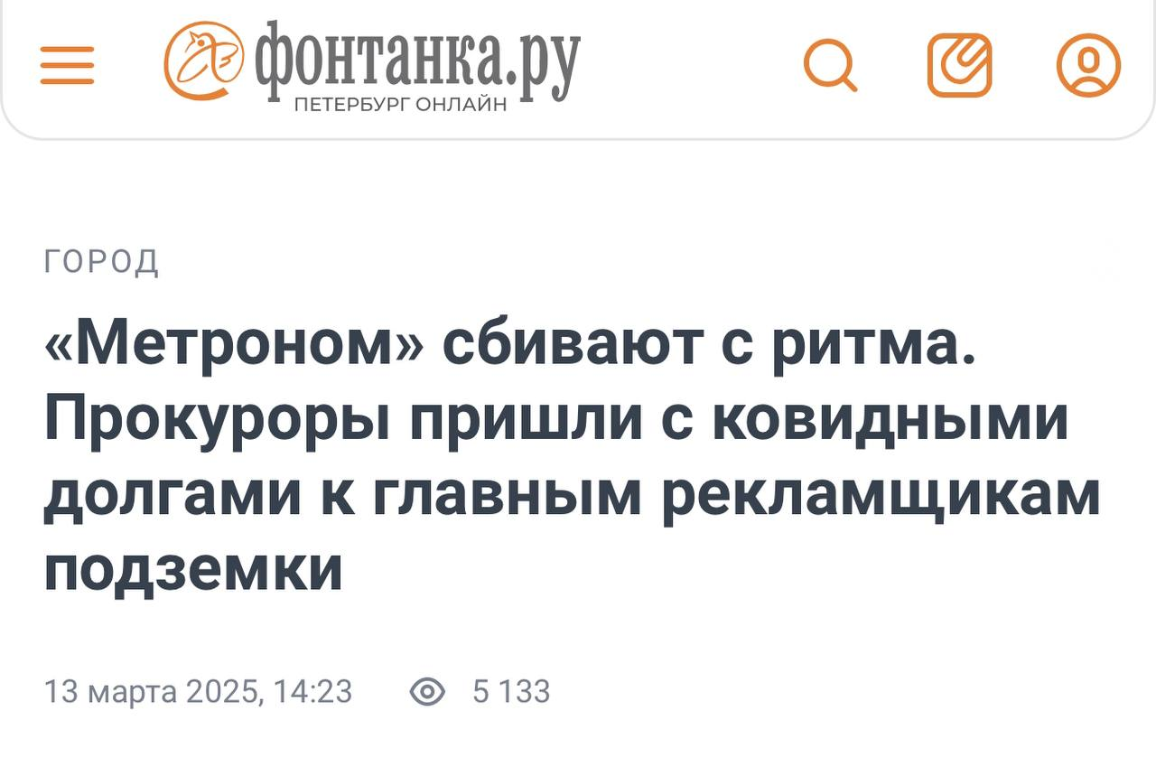 🤓О расследовании в отношении питерского оператора рекламы в метро пишет местное издание Фонтанка.
