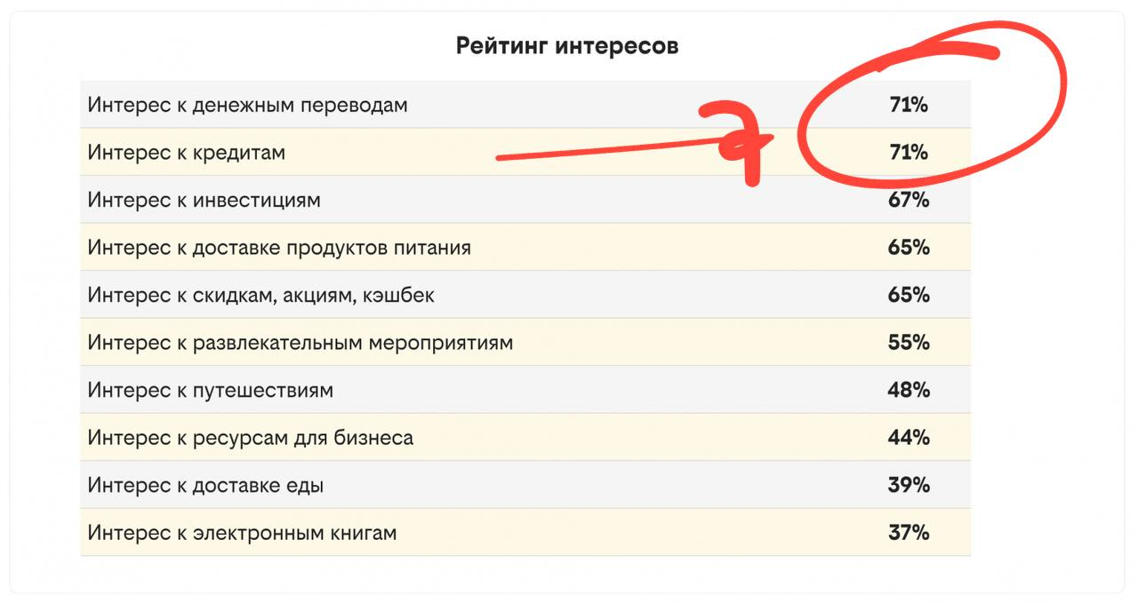 К слову, главные интересы «маркетологов» — кредиты и денежные переводы. Тут — охотно верим.