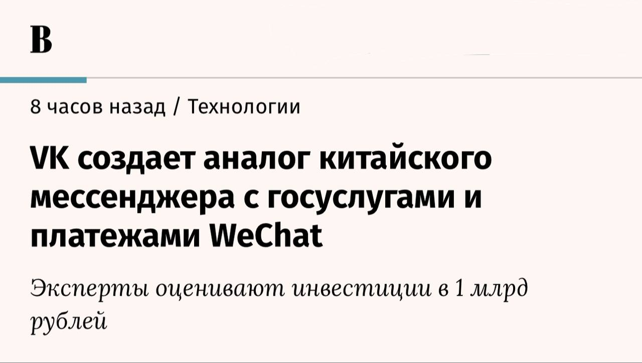 🤓ВК запускает аналог WeChat. А чего не аналог IPhone, Tesla или Google? Идеи же на поверхности?