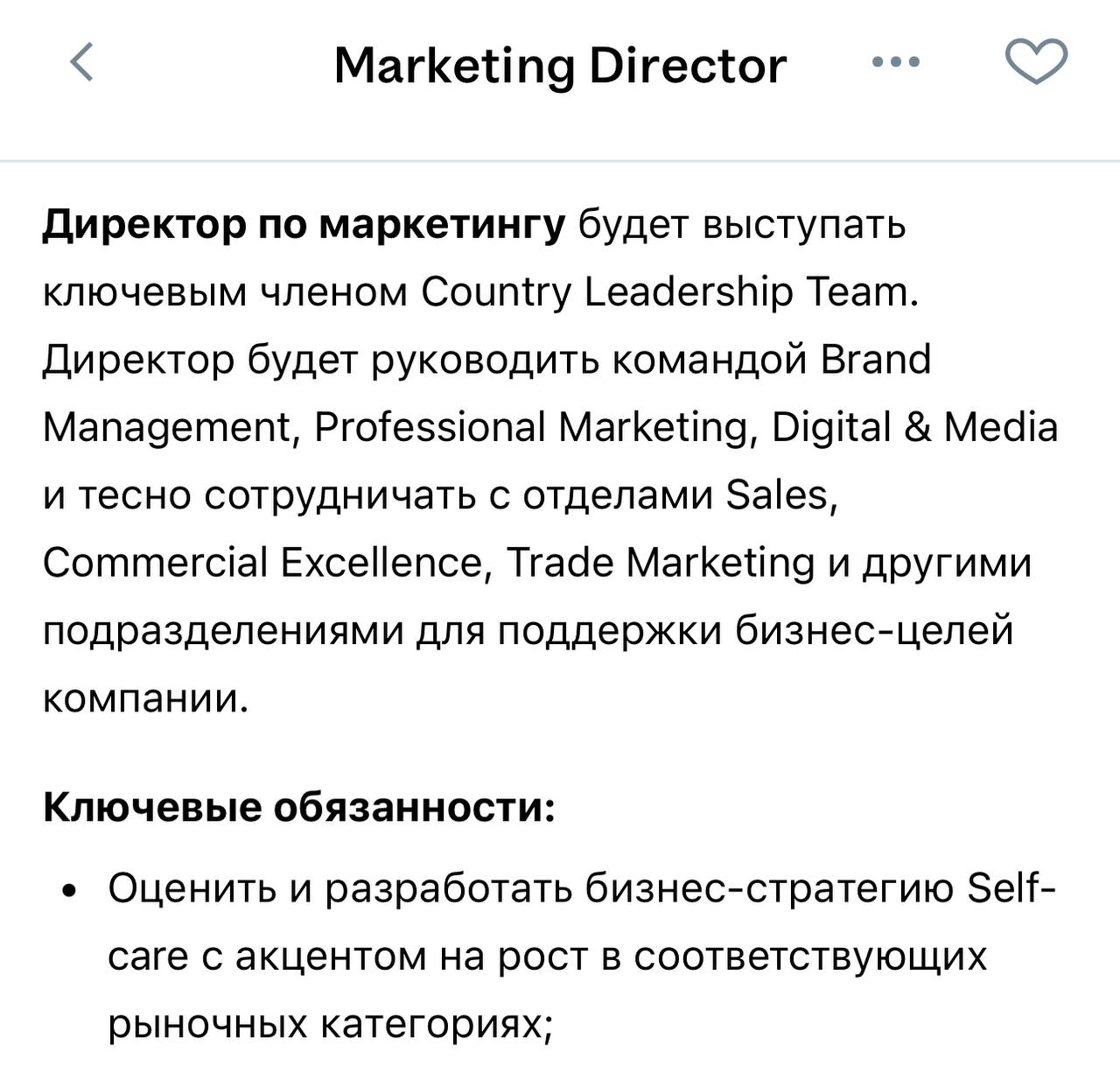Иначе зачем они ищут директора по маркетингу, который «будет выступать ключевым членом Country Leadership Team» и ставят требование «Умение управлять маркетинговым бюджетом, оптимизировать затраты и оценивать ROI маркетинговых инициатив».