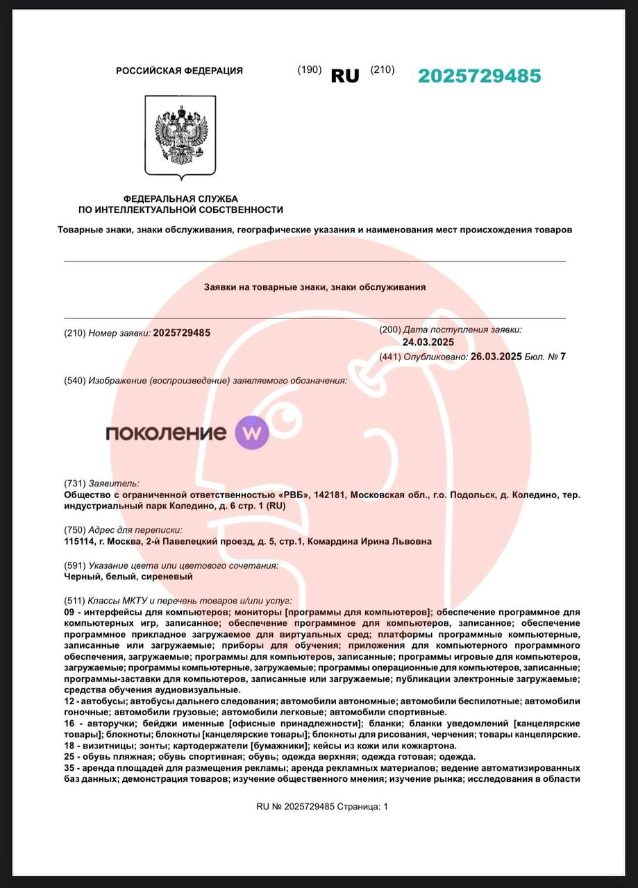 🤓Wildberries что-то задумали. Компания столбит в патентном ведомстве товарные знаки «Поколение W» и contentplace.