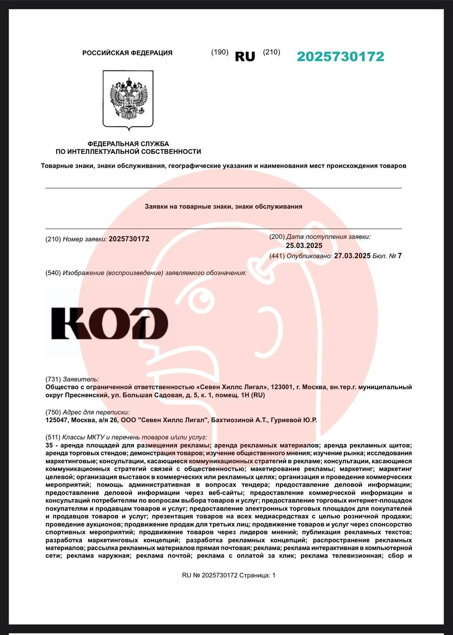 25 числа заявку на один и тот же знак «КОД», по одним и тем же классам подали от двух юрлиц.