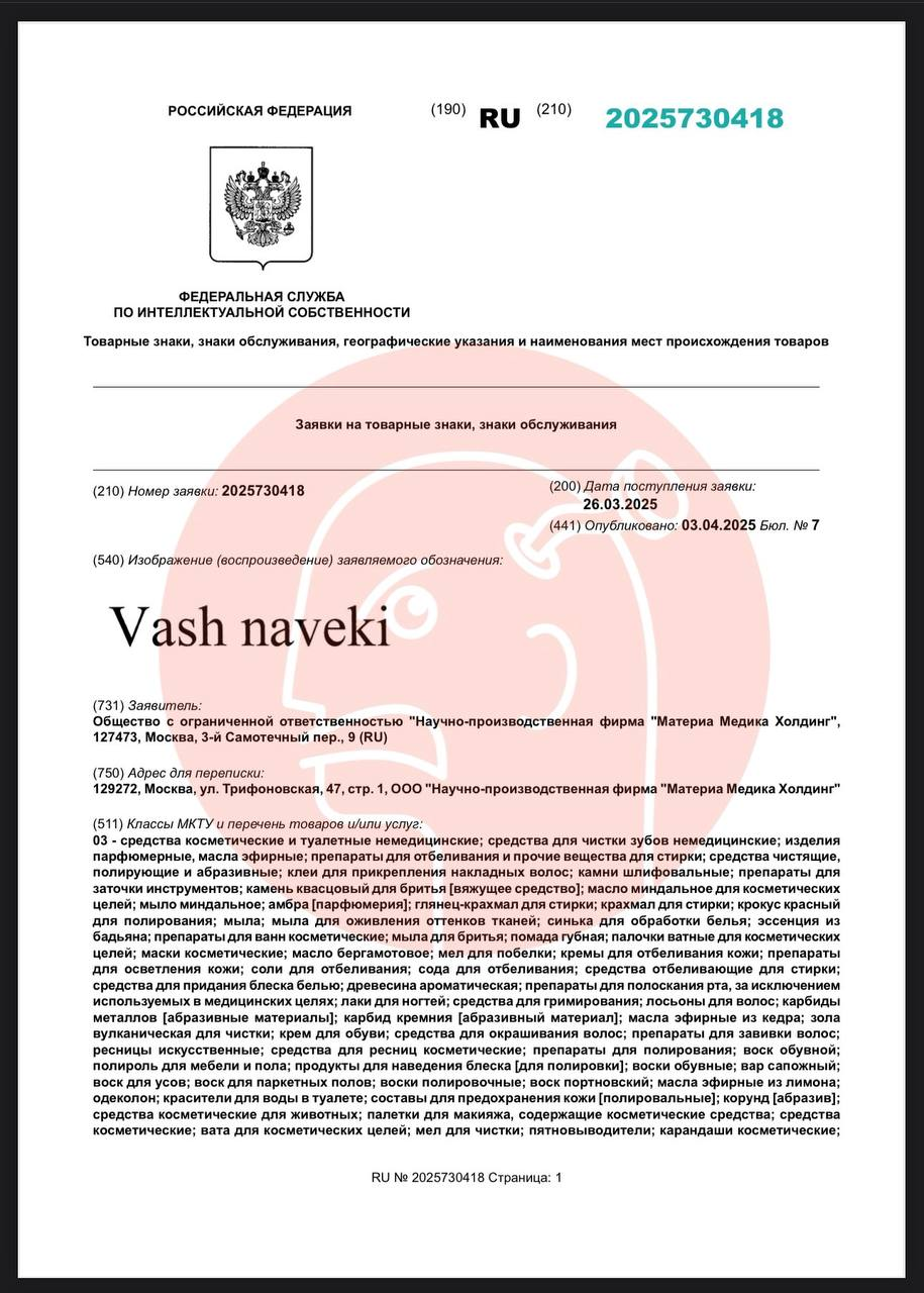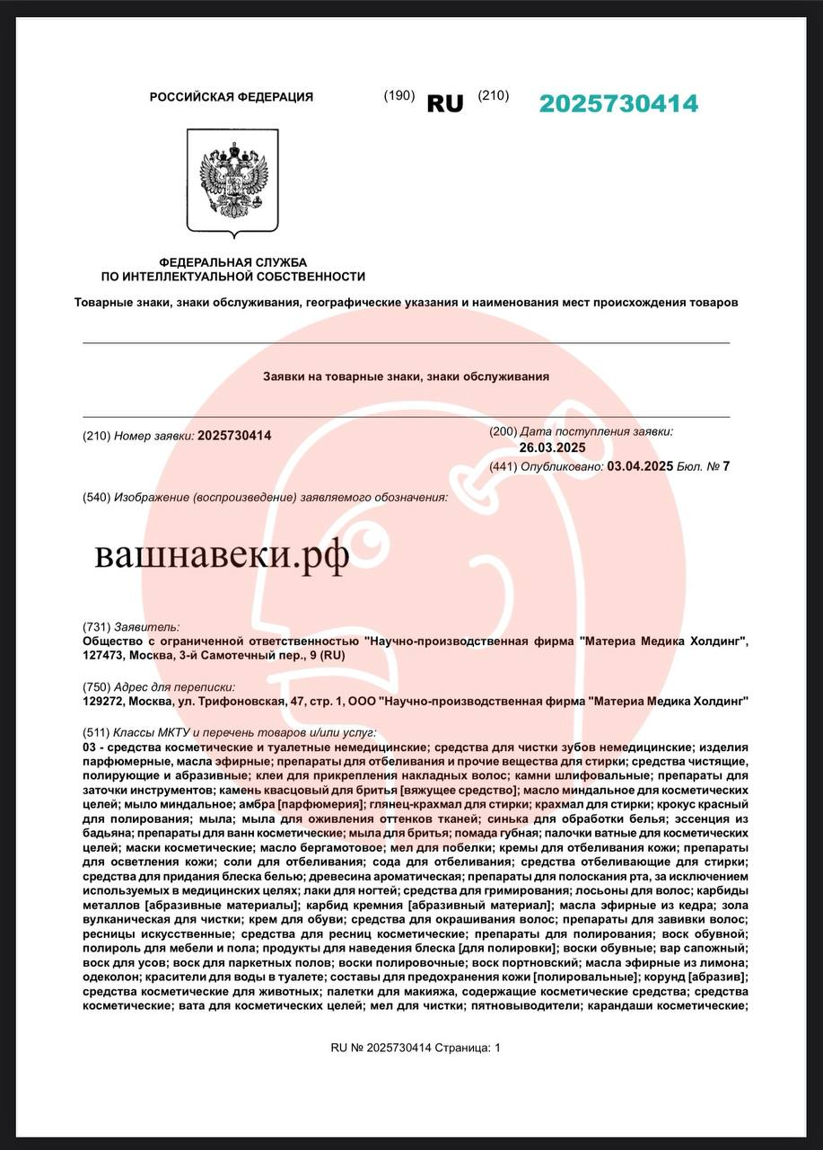 π€Π€Π°ΡΠΌΠ°ΡΠ΅Π²ΡΠΈΡΠ΅ΡΠΊΠΈΠΉ Ρ ΠΎΠ»Π΄ΠΈΠ½Π³ ΠΠ°ΡΠ΅ΡΠΈΡ ΠΌΠ΅Π΄ΠΈΠΊΠ° ΡΠ΅Π³ΠΈΡΡΡΠΈΡΡΠ΅Ρ ΡΠΎΠ²Π°ΡΠ½ΡΠΉ Π·Π½Π°ΠΊ «ΠΠ°Ρ Π½Π°Π²Π΅ΠΊΠΈ», ΠΊΠΎΡΠΎΡΡΠΉ Π±ΠΎΠ»ΡΡΠ΅ ΠΏΠΎΠ΄Ρ ΠΎΠ΄ΠΈΡ Π΄Π»Ρ ΡΠΈΡΡΠ°Π»ΡΠ½ΠΎΠΉ ΠΊΠΎΠΌΠΏΠ°Π½ΠΈΠΈ ΠΈΠ»ΠΈ ΠΌΠ°ΡΡΠ΅ΡΡΠΊΠΎΠΉ Π½Π°Π΄Π³ΡΠΎΠ±ΠΈΠΉ.