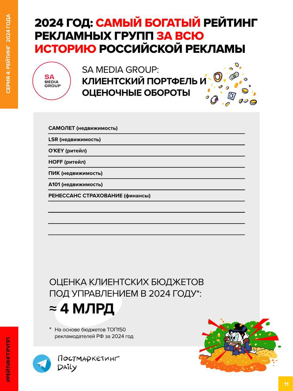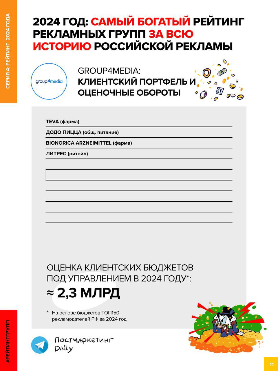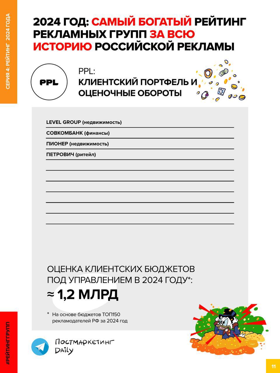 🤓Завершаем публикацию Полного Рейтинга рекламных групп и агентств за 2024 год от Постмаркетинг Daily. Того самого — «Самого богатого Рейтинга за всю историю российской рекламы».