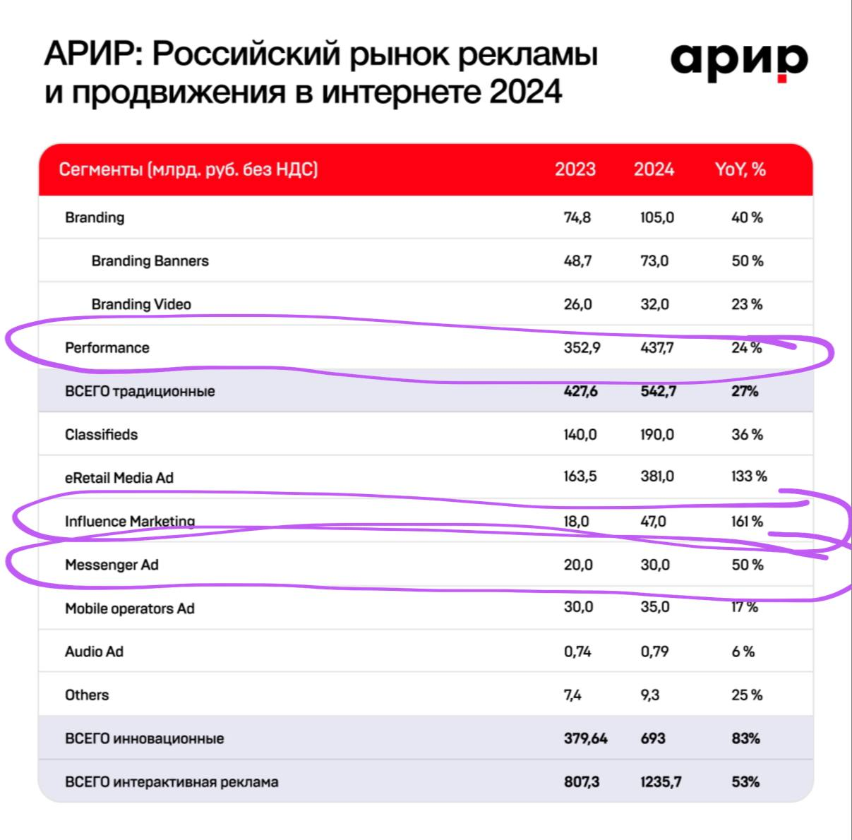 🤓Цифры от АРИР по объемам рынка Интернет. Мы не знаем как достоверно считать перформанс и все что связано с СММом и мессенджерами, которые там посчитан. Тем не менее, результаты таковы…
