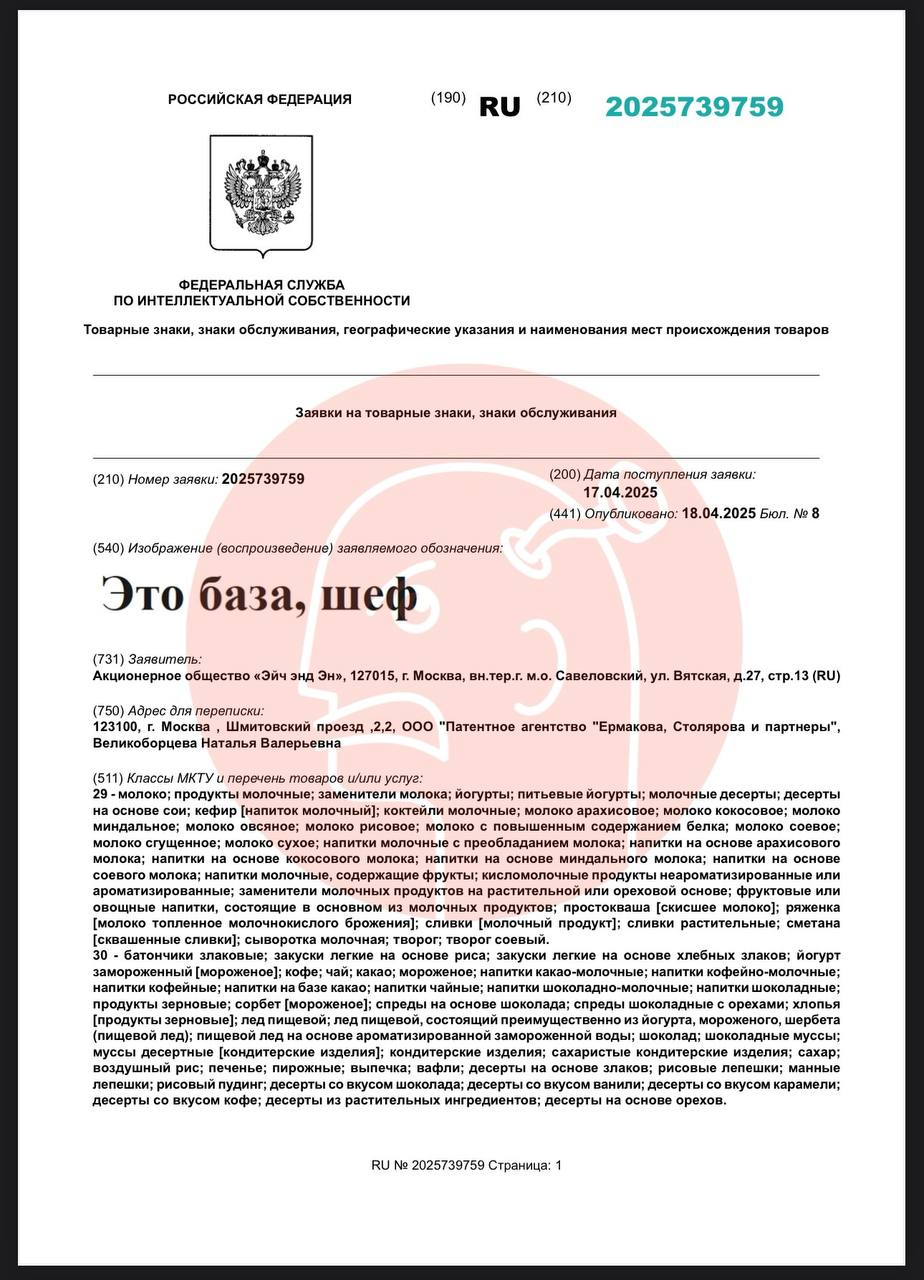 🤔Между тем, бывший Данон регистрирует в высшей мере странный бренд. Поисковики безмолвствуют.