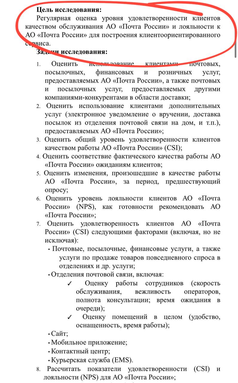 🤓Почта России объявила тендер на исследование уровня удовлетворенности их клиентов качеством обслуживания.