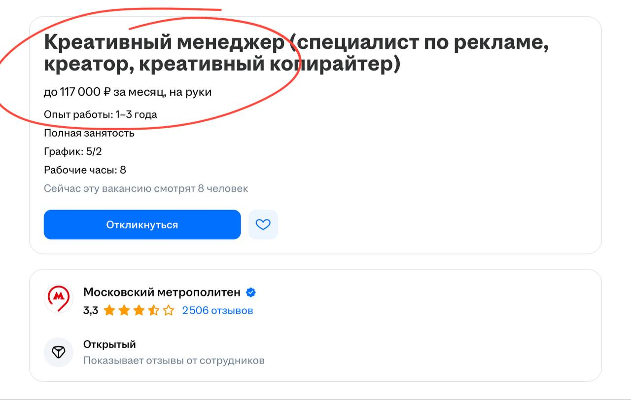 🤓Через неделю после эпического провала с юбилейным Омлет-лого, Московский метрополитен открыл поиск «креативного менеджера» в обязанности которого будет входить «контроль за визуальным и смысловым восприятием бренда».