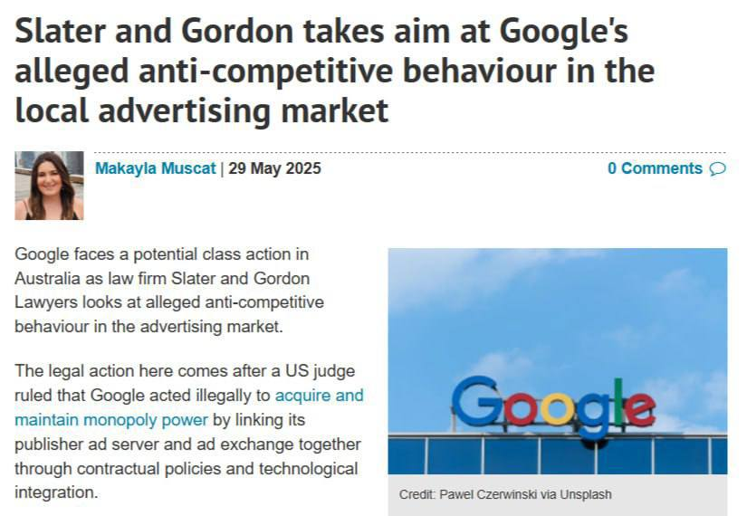 π€Π Π² ΠΠ²ΡΡΡΠ°Π»ΠΈΠΈ ΡΠΎΠΆΠ΅ Google ΠΌΠΎΠΆΠ΅Ρ ΡΡΠΎΠ»ΠΊΠ½ΡΡΡΡΡ Ρ ΠΊΠΎΠ»Π»Π΅ΠΊΡΠΈΠ²Π½ΡΠΌ ΠΈΡΠΊΠΎΠΌ ΠΈΠ·-Π·Π° Π°Π½ΡΠΈΠΊΠΎΠ½ΠΊΡΡΠ΅Π½ΡΠ½ΠΎΠ³ΠΎ ΠΏΠΎΠ²Π΅Π΄Π΅Π½ΠΈΡ Π½Π° ΡΡΠ½ΠΊΠ΅ ΠΎΠ½Π»Π°ΠΉΠ½-ΡΠ΅ΠΊΠ»Π°ΠΌΡ, ΠΊΠΎΡΠΎΡΠΎΠ΅ ΡΠ°ΡΡΠ»Π΅Π΄ΡΠ΅Ρ ΡΡΠΈΠ΄ΠΈΡΠ΅ΡΠΊΠ°Ρ ΡΠΈΡΠΌΠ° Slater and Gordon