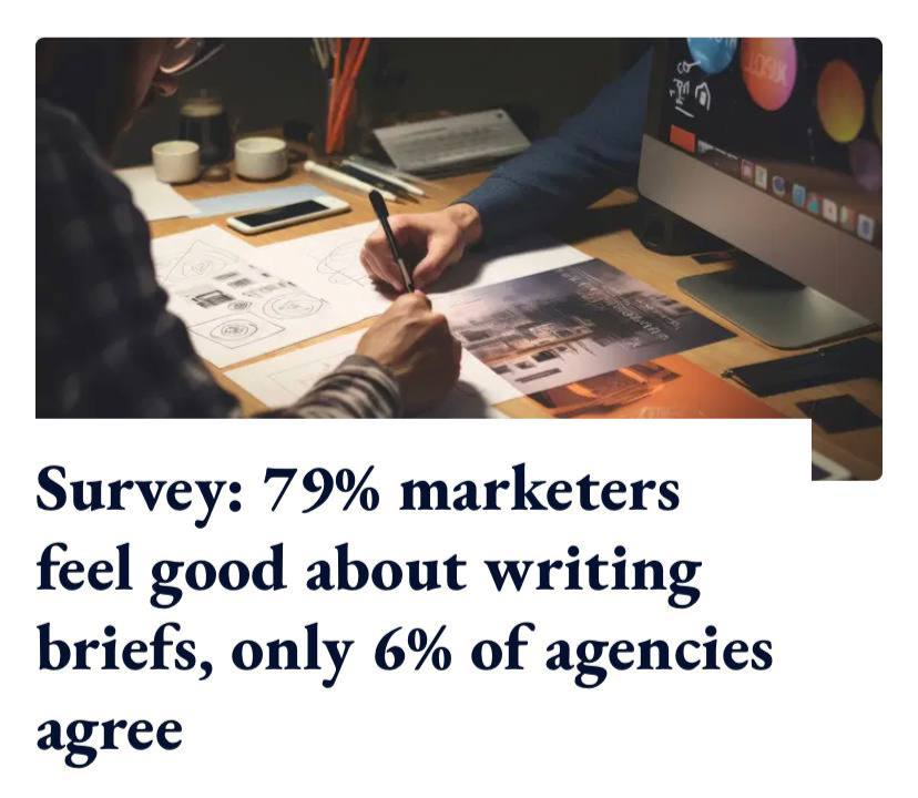 78% маркетологов во всем мире считают их чёткими, тогда как лишь 5% ‼️ агентств согласны. Несмотря на признание важности брифа (89% маркетологов и 86% агентств), более 90% участников считают, что он часто игнорируется.