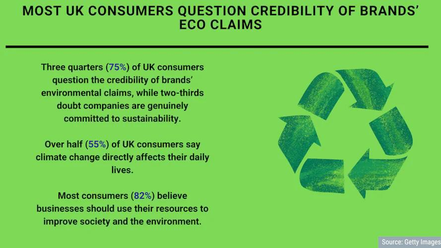 По данным Getty Images, 75% британских потребителей не верят в экологическим заявлениям брендов, а 66% не верят в их стремление к устойчивому развитию.