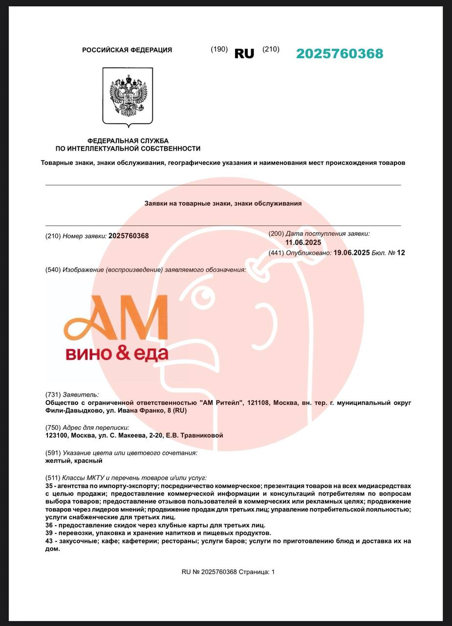 Заявка подана от имени ООО «АМ ритейл». На него же зарегана куча других товарных знаков Ароматного мира.