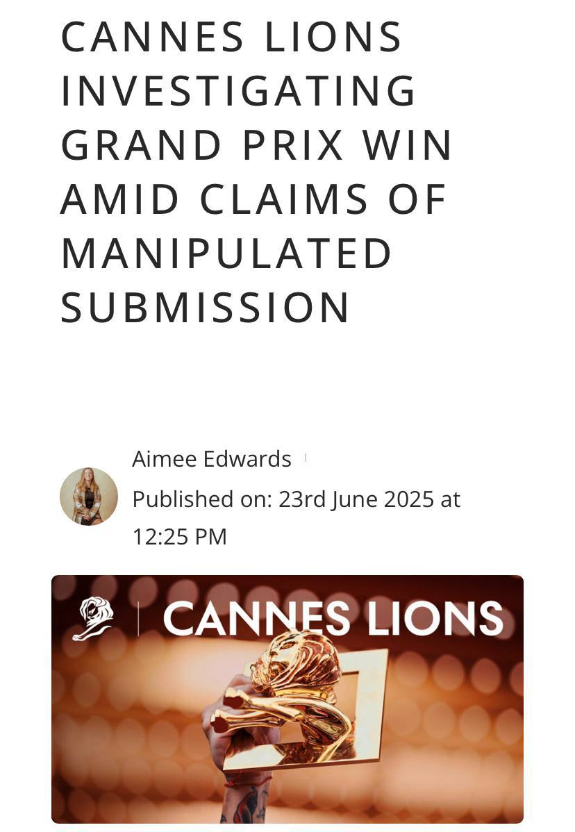 🤓Вот и с Каннского фестиваля рекламы слетает ореол романтики. Скандал за скандалом сопутствуют ему в этом году.