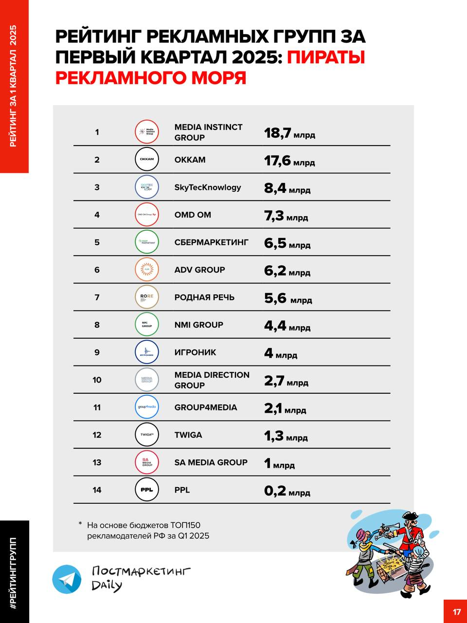 🤓Итак, мы подводим финал нашего запоздалого рейтинга оборотов групп и агентств за первый квартал 2025 года.