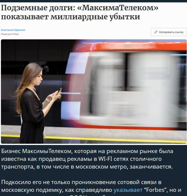 🤓Коллеги написали некролог оператору вайфая в столичном метро. Максима Телеком отправляется туда же, куда ушли пейджинговые компании. В небытие.