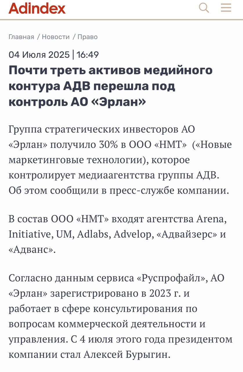 🤓Фиксируем для истории. Загадочные вещи происходят вокруг АДВ. Кажется, рынком рекламы, таки, заинтересовались серьезные люди из большого бизнеса.