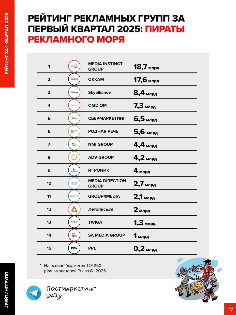 🤓Мы внесли существенную правку в наш рейтинг групп и агентств за первый квартал.