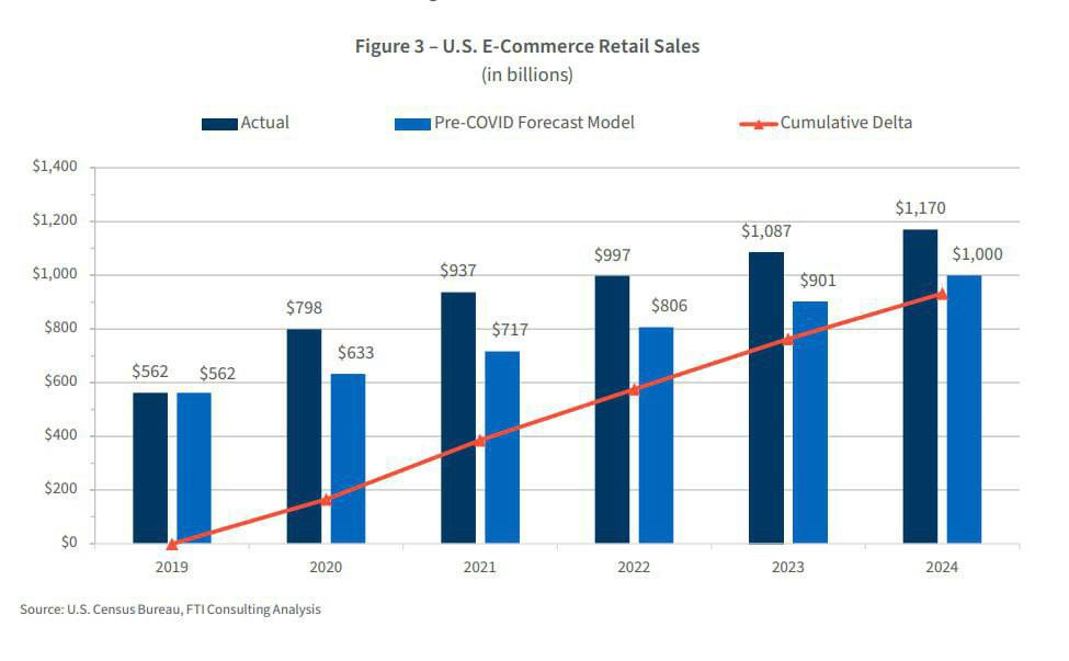 Эпоха стремительного роста электронной коммерции подходит к концу. По данным FTI Consulting, в 2025 году онлайн-продажи в США достигнут $1,27 трлн, составив 23,5 % розничного рынка, но дальнейший рост замедлится и к 2030 году доля вряд ли достигнет 30 %. Все. Потенциал исчерпан, нормальная доля почти достигнута.