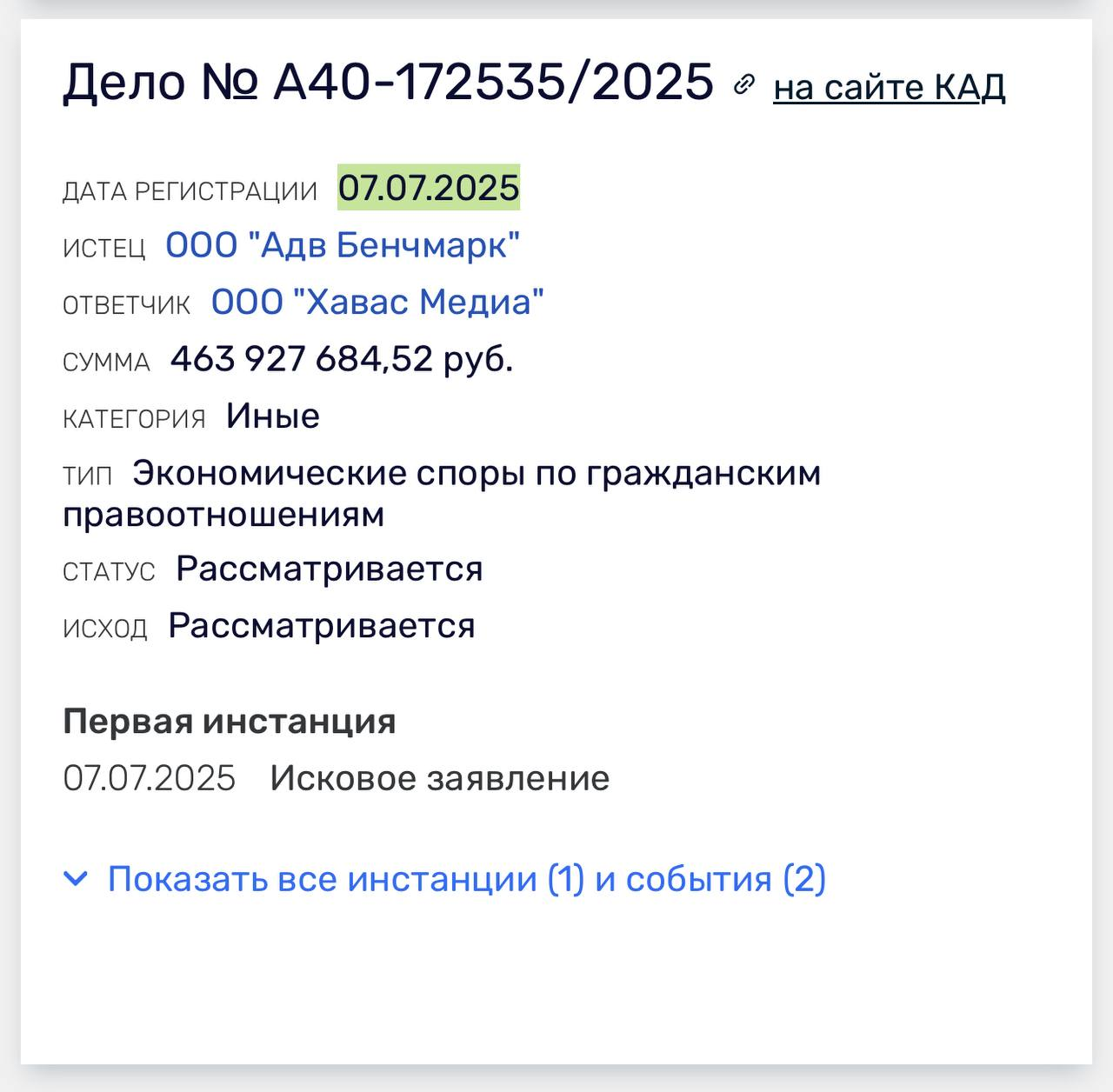🤓Снова здорово! АДВ бенчмарк подал иск на полмиллиарда к Хавасу. Доброе утро.