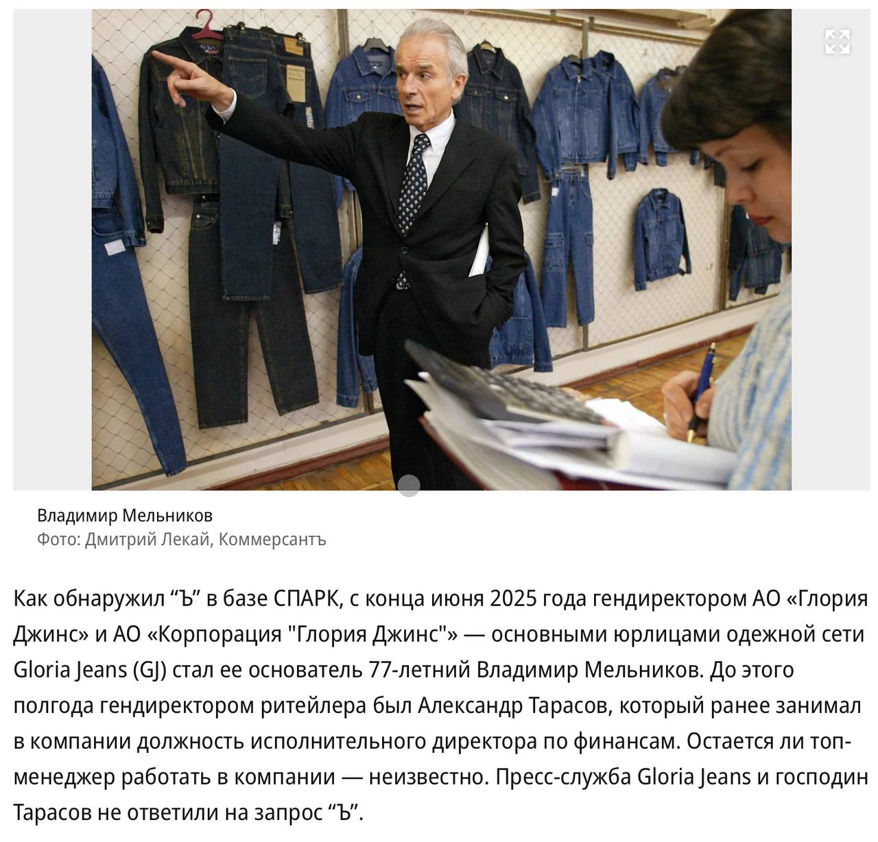 🤓Какая важная новость прокатилась почти незамеченной на прошлой неделе! Владимир Мельников возвращается к управлению Глорией Джинс. Которая, надо признать, в последние годы наделала массу ошибок с наемными менеджерами во главе.