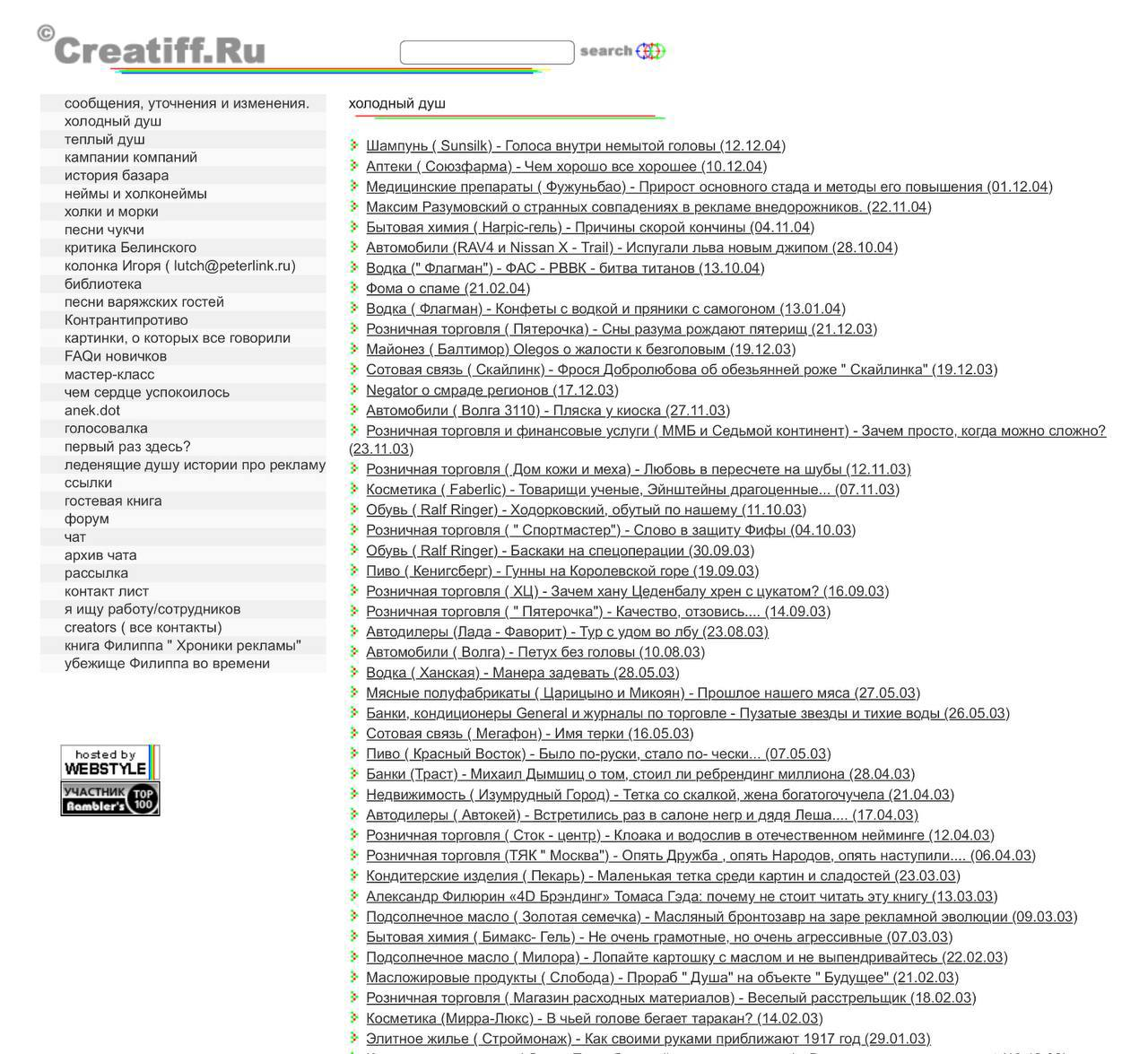 Редакция в отпуске, поэтому на этой неделе мы публикуем мемориальный цикл «Креатифф.ру», в преддверии 20-летней годовщины ухода Филиппа и закономерного финала Креатиффа, как в формате сайта, так и сообщества.