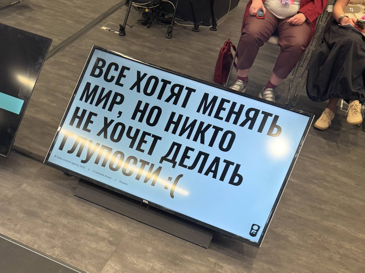 Лучшее, что мы там видели — это это слайд. Притащили ребята из Soda × D Innovate group, которые пытаются оставаться людьми и не изменять себе, играя в большой бизнес с корпоратами. Редкое качество.