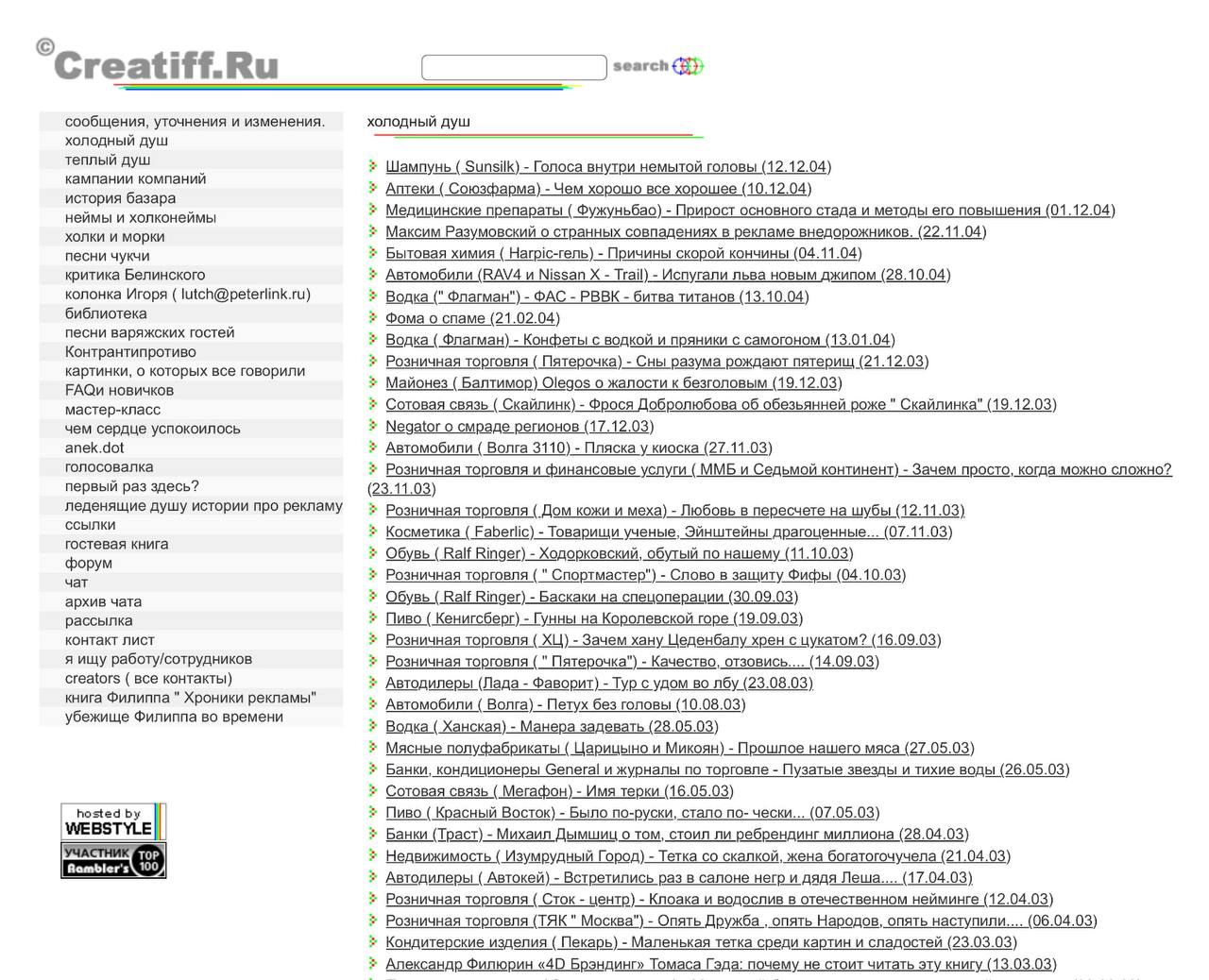🧐Сreatiffru, 2000 — 2005. Мемориал. Рубрика «Холодный душ».