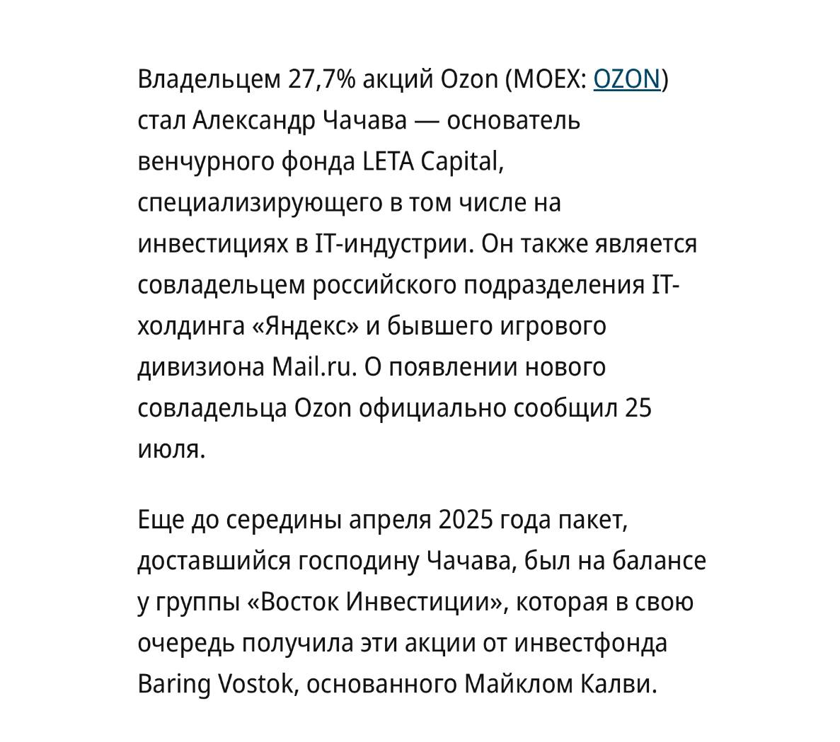 🤓Встречаем нового совладельца Озона. Тут обошлось без сюрпризов, один из двух крупнейших маркетплейсов — в надежных руках.