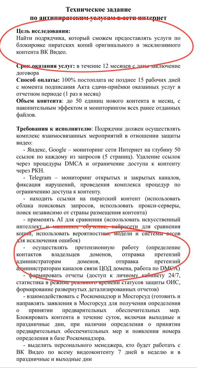 🤔ВК ищет тех, кто может бороться с пиратством эксклюзивного контента ВК Видео на сторонних (в том числе — конкурирующих) ресурсах.