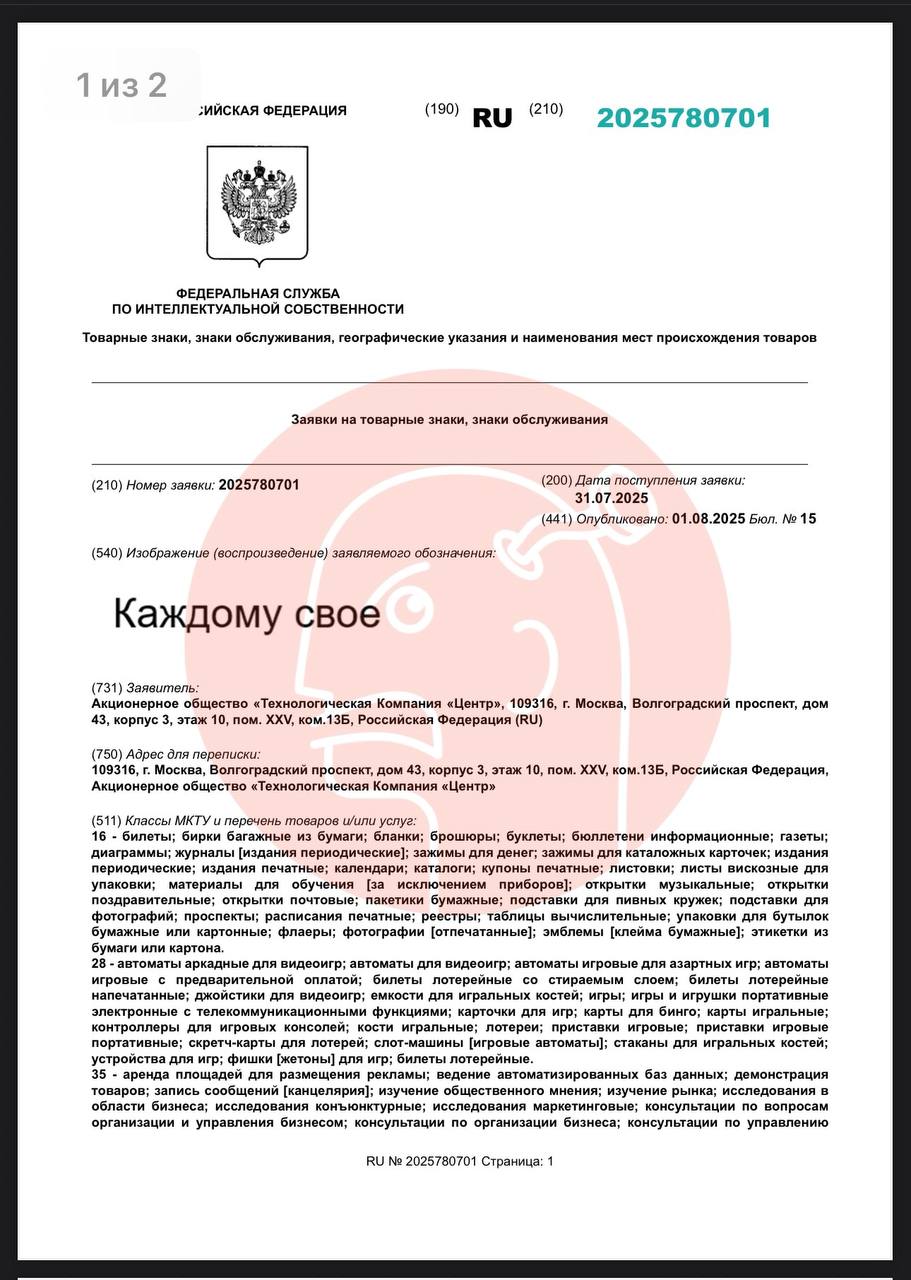 2. «Каждому свое» (Jedem das Seine) от лотерейного оператора Столото.