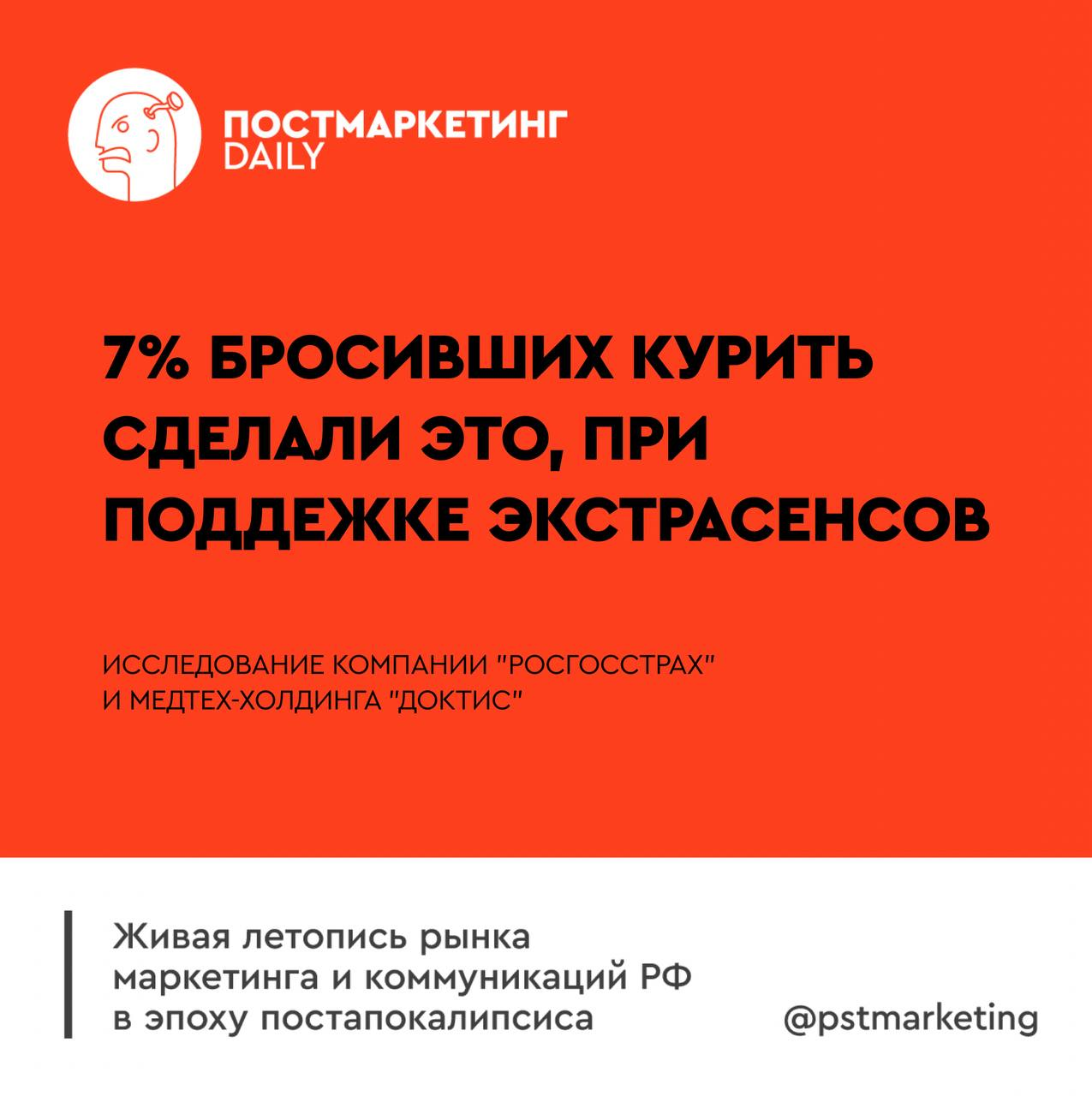 🤓Любопытный пример того, что даже самые дикие концепции и их последователи могут быть полезны обществу. Росгосстрах наисследовал, тот факт, что 7% бросивших курить россиян сделали это при помощи разного рода херомантии.