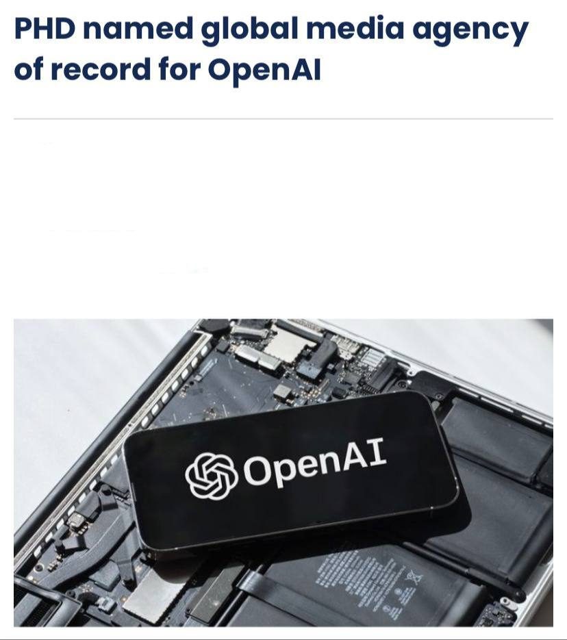 🤔А вот важный факт. OpenAI (разработчик ChatGPT) впервые выбрала глобального медиапартнёра — агентство PHD из группы Omnicom, пересмотрев прежнюю модель внутреннего агентства.
