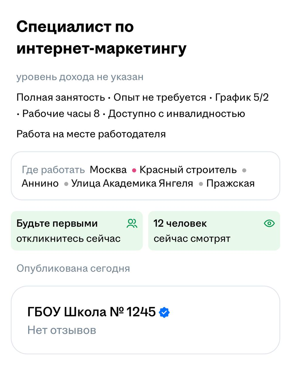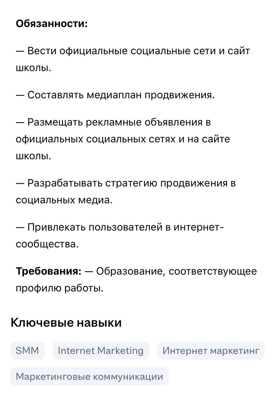 🤔Государственная московская школа ищет «специалиста по интернет-продвижению» в штат.