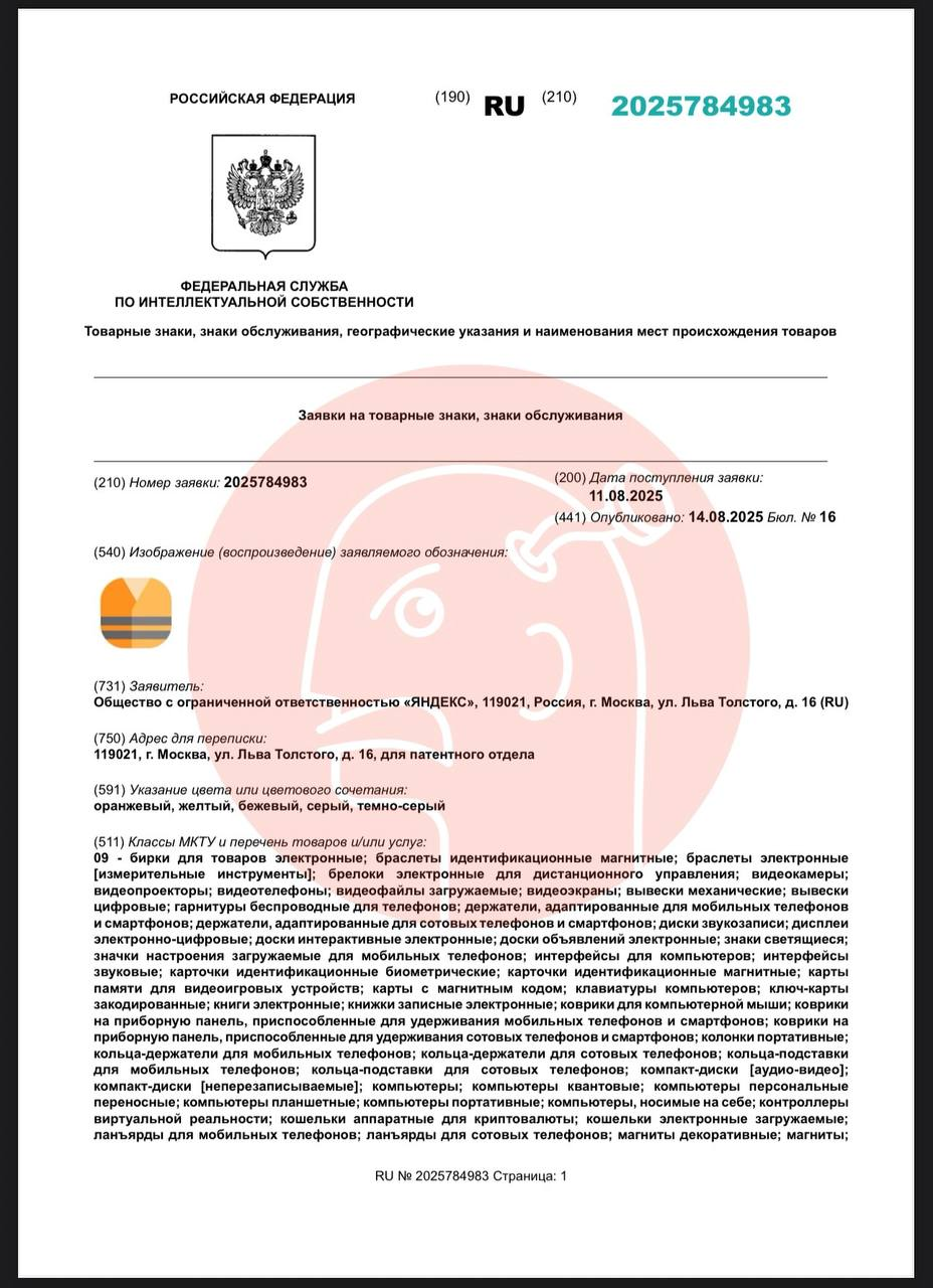 🤔Смотрите какую забавную иконку патентует Яндекс.