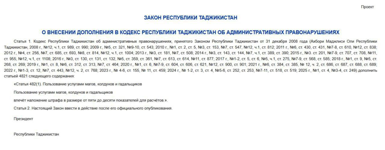🤓Нужная и важная инициатива из соседнего государства. В Таджикистане планируют ввести штрафы за обращение к гадалкам и колдунам в размере от 375 до 750 сомони (40-80$).