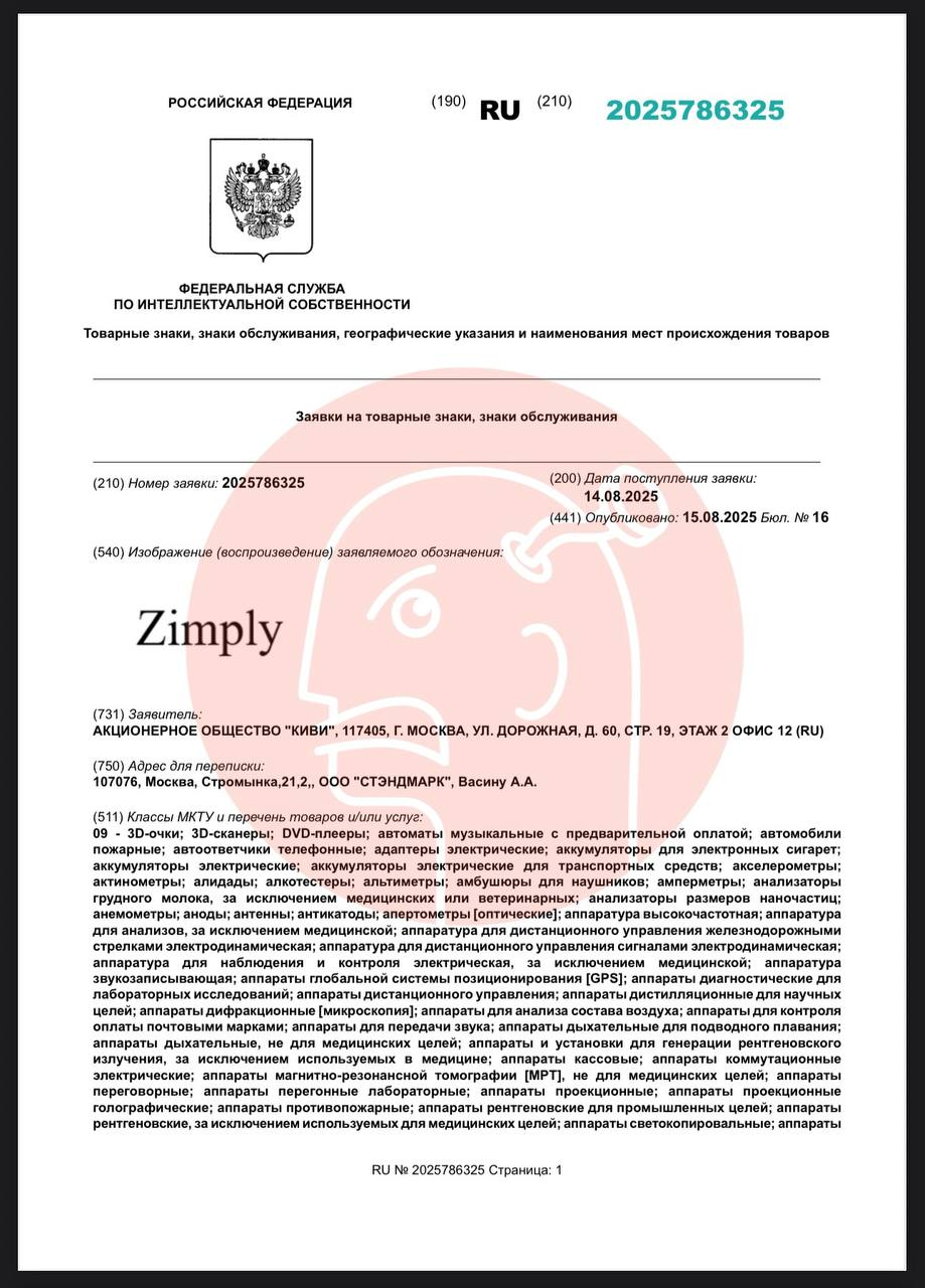 🤓Киви вышел из спячки и регистрирует новые бренды. Сам он теперь — технологическая платформа для проведения транзакций, или что-то вроде.