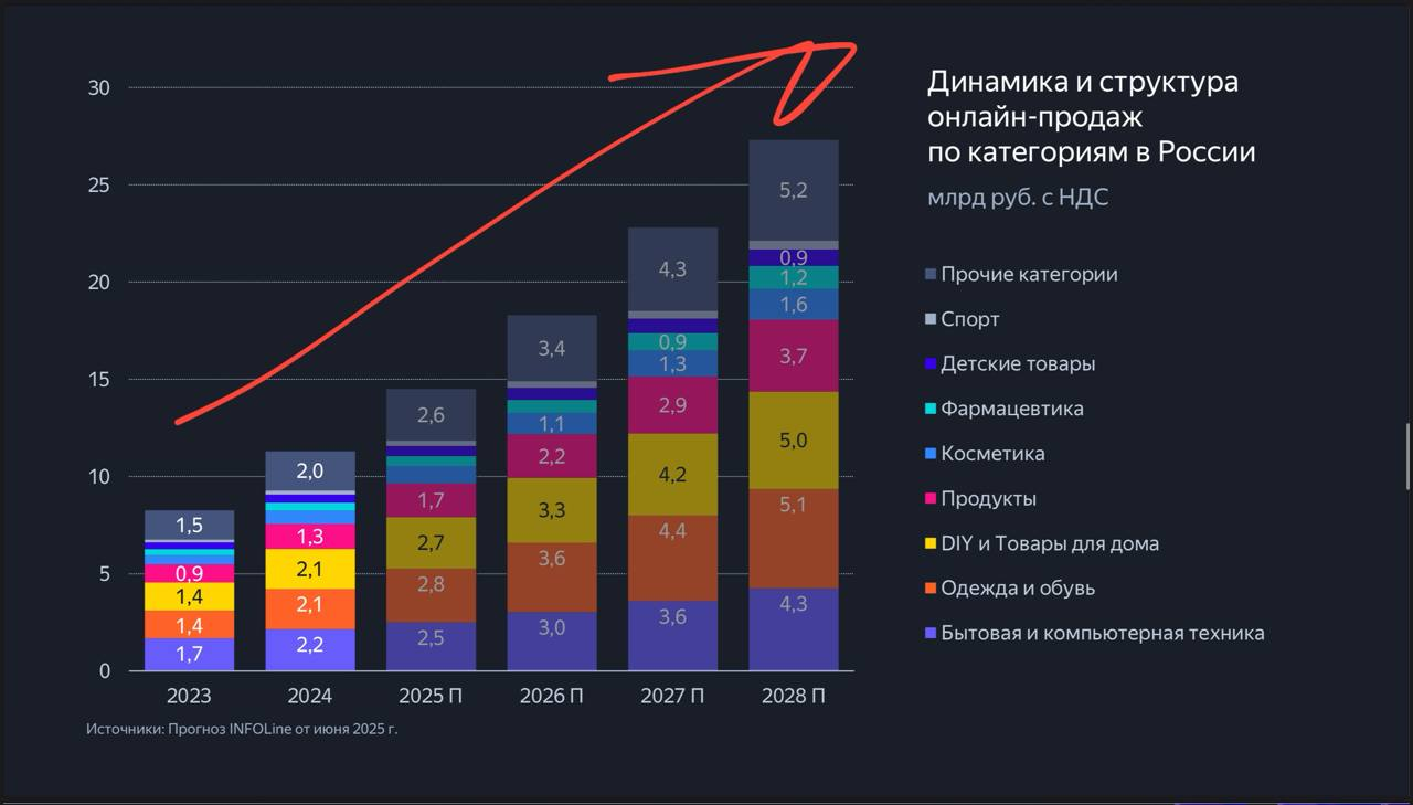 4. Маркетплейсы — это 2/3 оборота всего онлайна.
