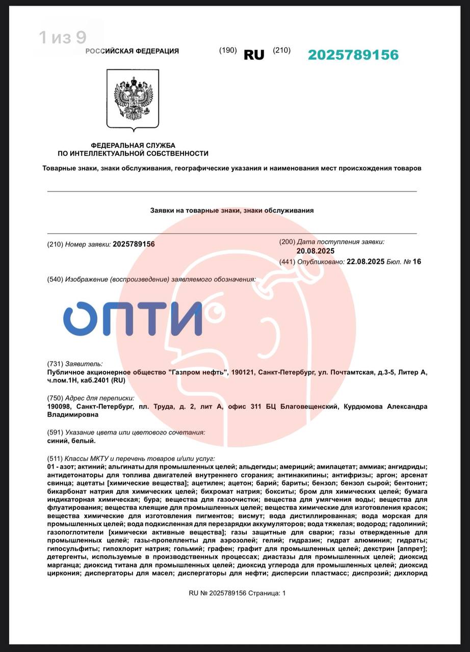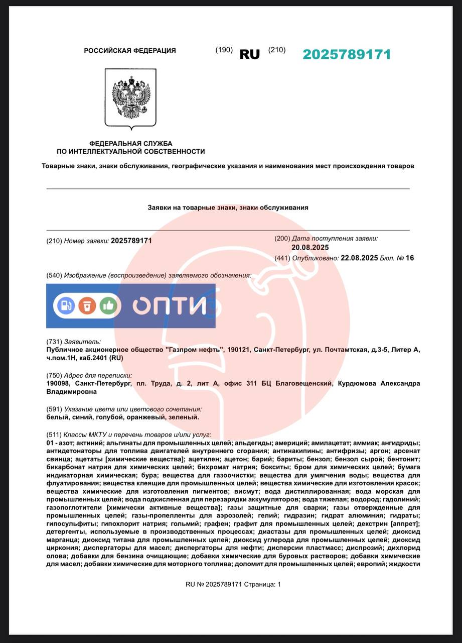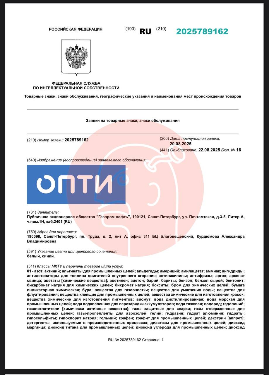 🤓Газпром нефть планирует ребрендинг дочерней сети заправок «Опти». Заявление о правах на новое начертание подано в патентное ведомство.