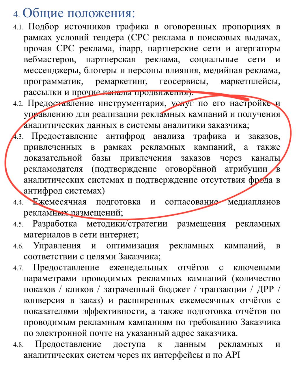 Вот, например, на проводимом сейчас перформанс-тендере 36.6 агентства просят искать фрод у самих себя. Ну то есть буквально — сами нам расскажите, если использовали нечестные источники трафика и лидогерации.