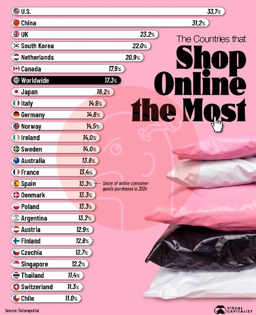 ΠΠ°ΠΆΠ΅ Π² ΡΠ°ΠΌΡΡ Π°ΠΊΡΠΈΠ²Π½ΡΡ ΡΡΡΠ°Π½Π°Ρ Π΄ΠΎΠ»Ρ ΠΎΠ½Π»Π°ΠΉΠ½-ΠΏΠΎΠΊΡΠΏΠΎΠΊ ΡΠΎΠ²Π°ΡΠΎΠ² Π² 2024 Π³ΠΎΠ΄Ρ Π½Π΅Π²ΡΡΠΎΠΊΠ°.Π Π‘Π¨Π ΠΈ ΠΠΈΡΠ°Π΅ ΠΎΠ½Π° ΡΠΎΡΡΠ°Π²Π»ΡΠ΅Ρ Π»ΠΈΡΡ 33,7% ΠΈ 31,2% ΡΠΎΠΎΡΠ²Π΅ΡΡΡΠ²Π΅Π½Π½ΠΎ, Π° Π² ΡΡΠ΅Π΄Π½Π΅ΠΌ ΠΏΠΎ ΠΌΠΈΡΡ Π²ΡΠ΅Π³ΠΎ 17,3%. ΠΡΠΈ ΡΡΠΎΠΌ, ΡΡΠ½ΠΊΠΈ Π±Π»ΠΈΠ·ΠΊΠΈ ΠΊ ΠΌΠ°ΠΊΡΠΈΠΌΠ°Π»ΡΠ½ΠΎΠΌΡ ΠΏΡΠΎΠ½ΠΈΠΊΠ½ΠΎΠ²Π΅Π½ΠΈΡ ΠΎΠ½Π»Π°ΠΉΠ½Π° — Π³Π»ΡΠ±ΠΆΠ΅ ΠΏΠ΅Π½Π΅ΡΡΠΈΡΠΎΠ²Π°ΡΡ Π½Π΅ΠΊΡΠ΄Π°.