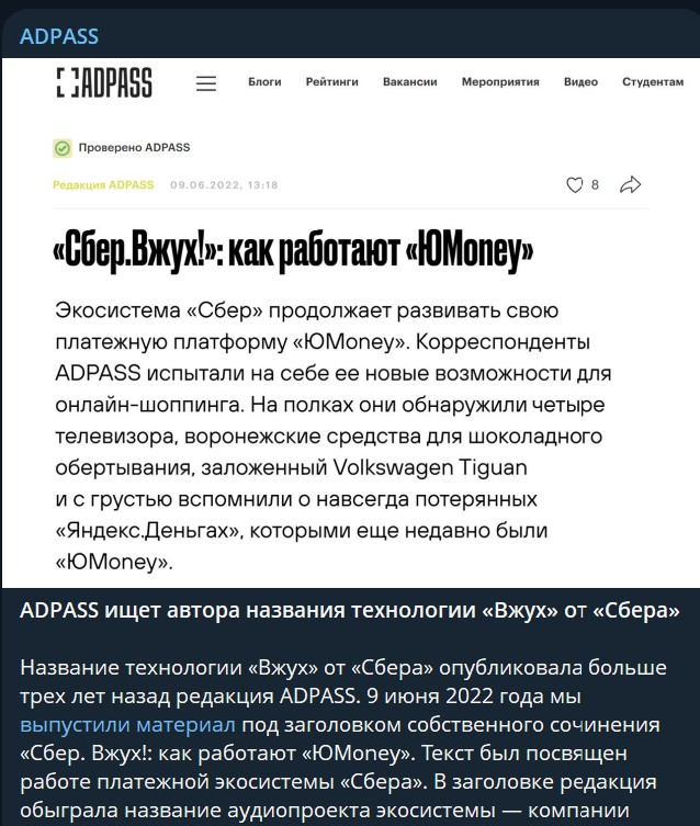 😂Вы удивитесь, но, кажется, название «Вжух» для платежного сервиса Сбера — придумал АДПАСС.